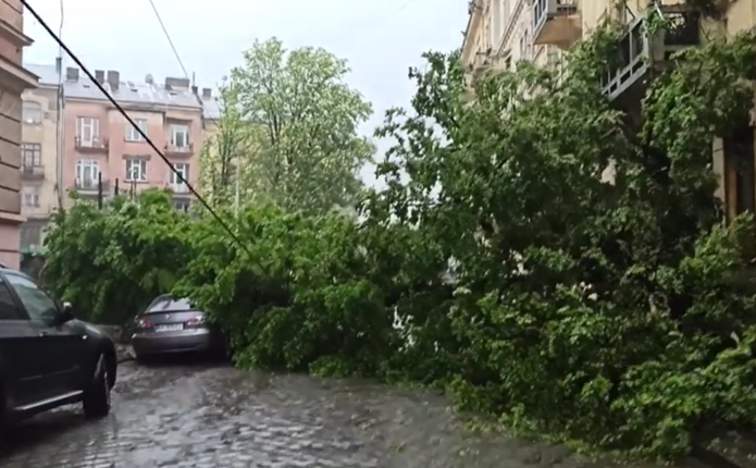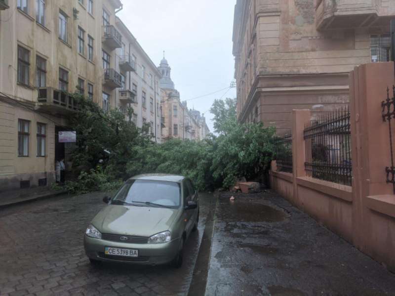В центрі міста аварійне дерево впало на припарковані автомобілі.