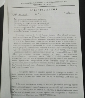 За інформацією сільського голови Миколи Костащука, Держгеокадастр хотів надати дозвіл колишньому начальнику та замначальника управління на розробку проекту землеустрою щодо відведення у власність двох земельних ділянок по 1,86 га кожна.