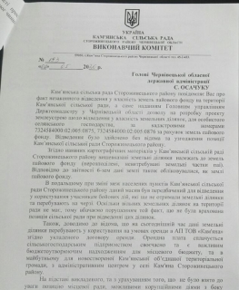 Кам’янська сільська рада звернулася до правоохоронців щодо неправомірних дій посадових осіб Головного управління Держгеокадастру у Чернівецькій області.