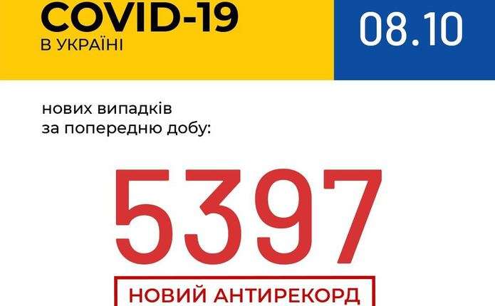 В Україні зафіксовано 5 397 нових випадків коронавірусної хвороби – це антирекорд кількості нових хворих за добу.