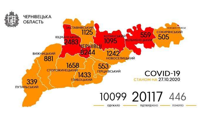 За весь період (станом на 27 жовтня 2020 року) у Чернівецькій області підтверджено 20117 випадків зараження коронавірусом, повідомляє Чернівецька ОДА.