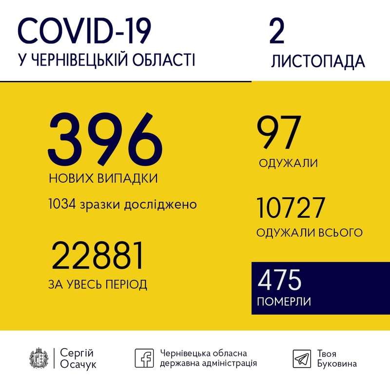 396 нових випадків коронавірусу виявили на Буковині за добу!