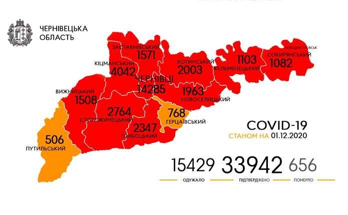 За весь період (станом на 1 грудня 2020 р.) у Чернівецькій області підтверджено 33942 випадків зараження коронавірусом, повідомляє Чернівецька ОДА.