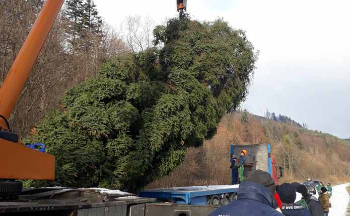 У Чернівці доправили головну новорічну ялинку Буковини. Вона тішитиме мешканців області під час прийдешніх свят. Зрубали дерево на території Мигівського лісництва.