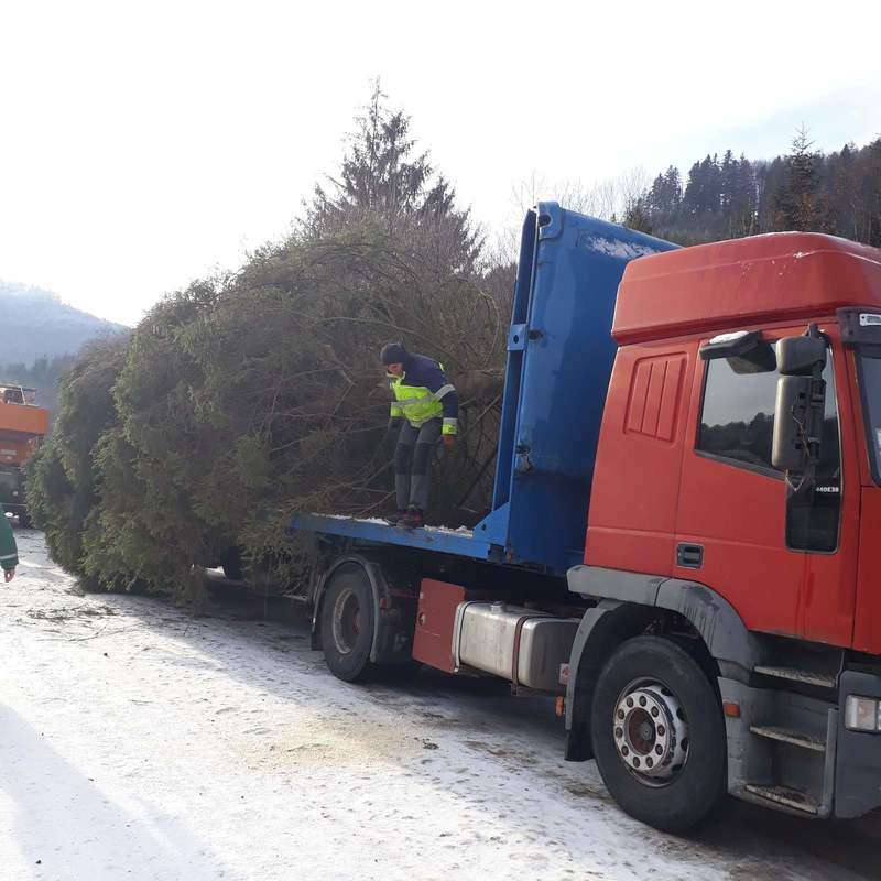 Представники тресту зеленого господарства ретельно спиляли дерево, а потім за допомогою крана завантажили його та обв’язали. У супроводі спецавтомобіля працівників поліції новорічну красуню перевезли до Чернівців.