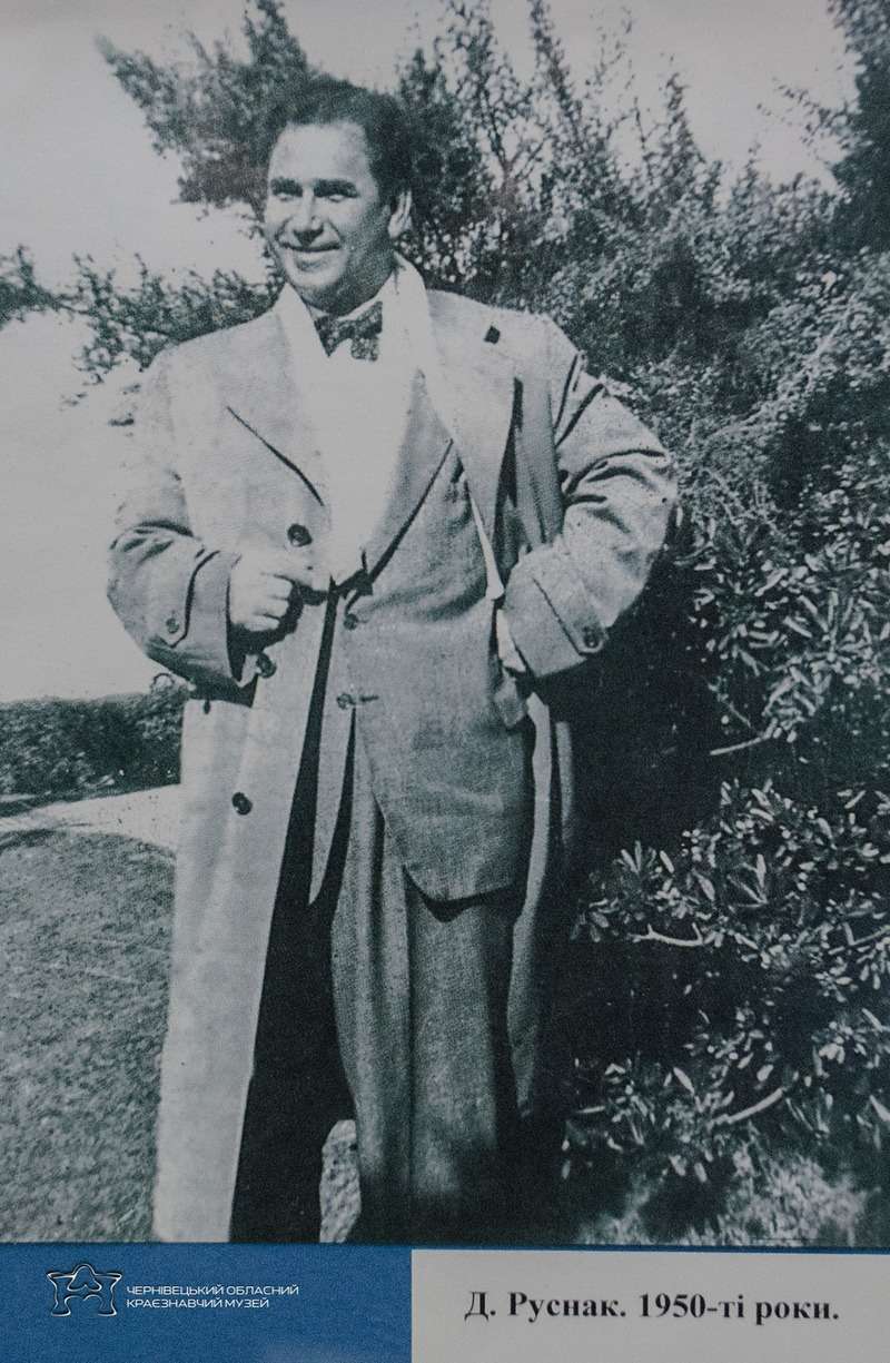 Саме цей досвід допоміг йому готувати співаків для української театральної трупи, якою керував відомий на Буковині артист і режисер Іван Дудич. У 1936 р. Денис Руснак знов отримав листа-пропозицію від Сергія Жарова. Але цього разу залишає рідний край уже назавжди! У 1952 р., під час гастролей у Нью-Йорку, виснажений хворобою, мандрами та тугою за рідними, Денис упав на сцені. Там його й поховали. Згодом дружина Анна Марія (Ганна) перепоховала тіло чоловіка у Мюнхені.