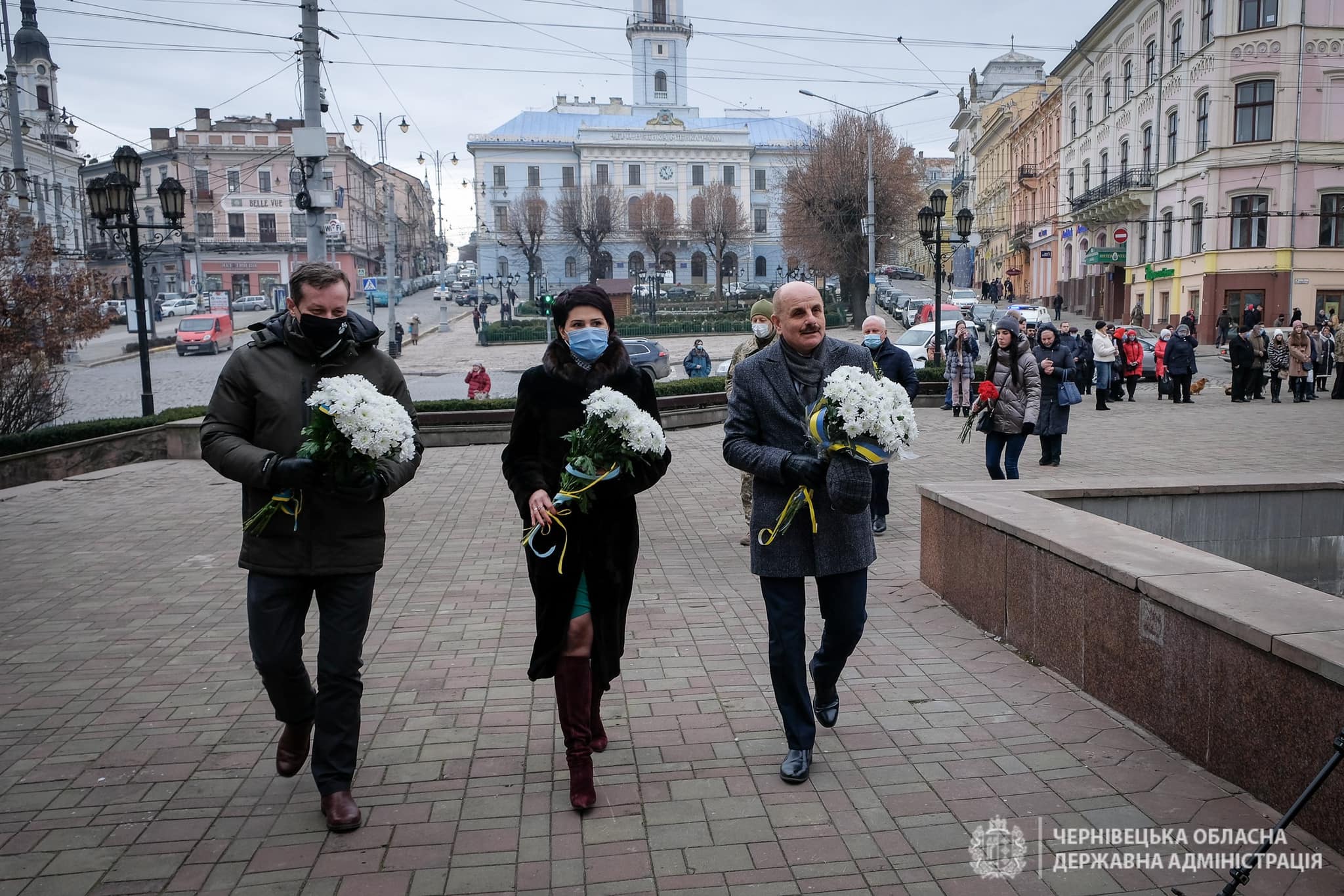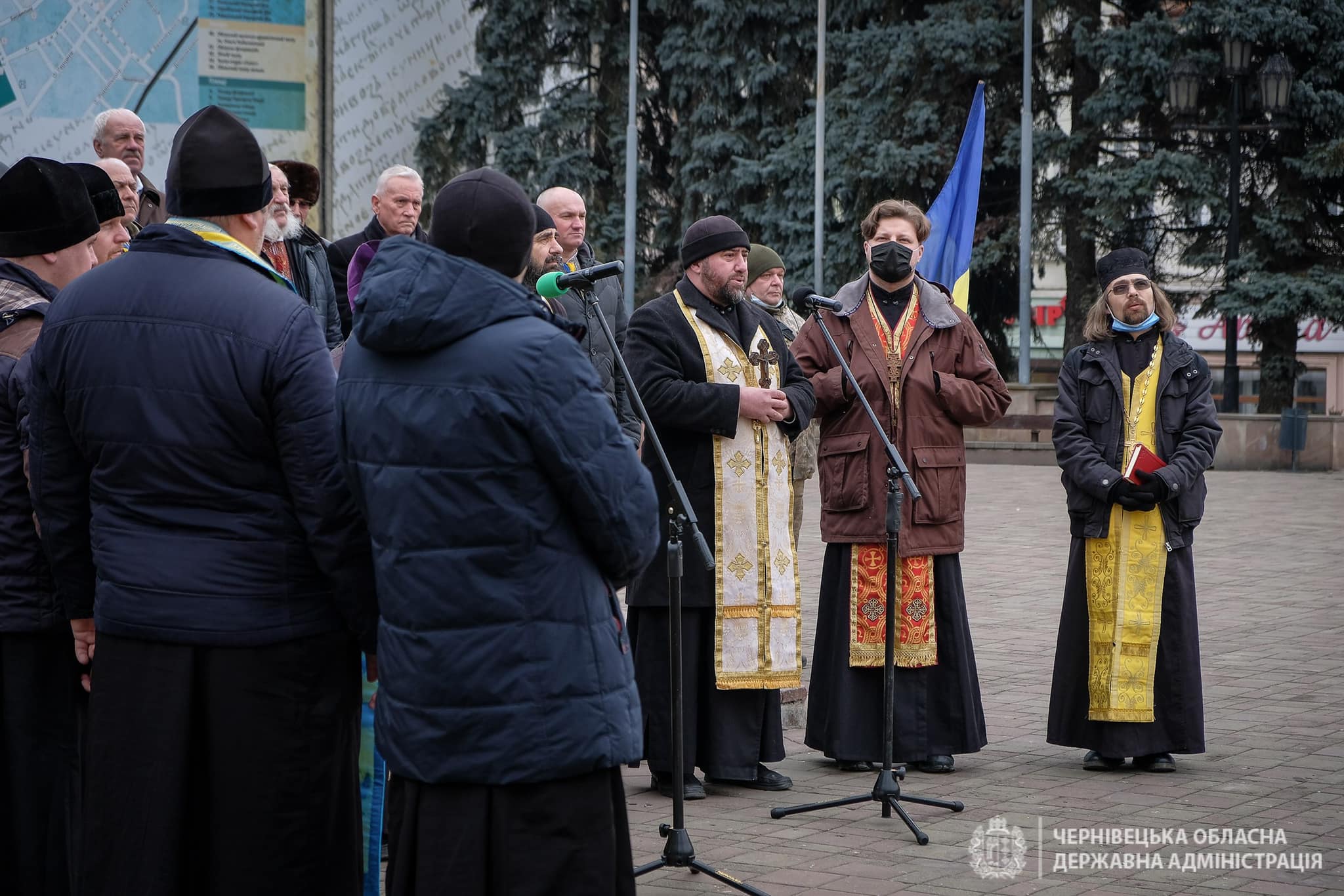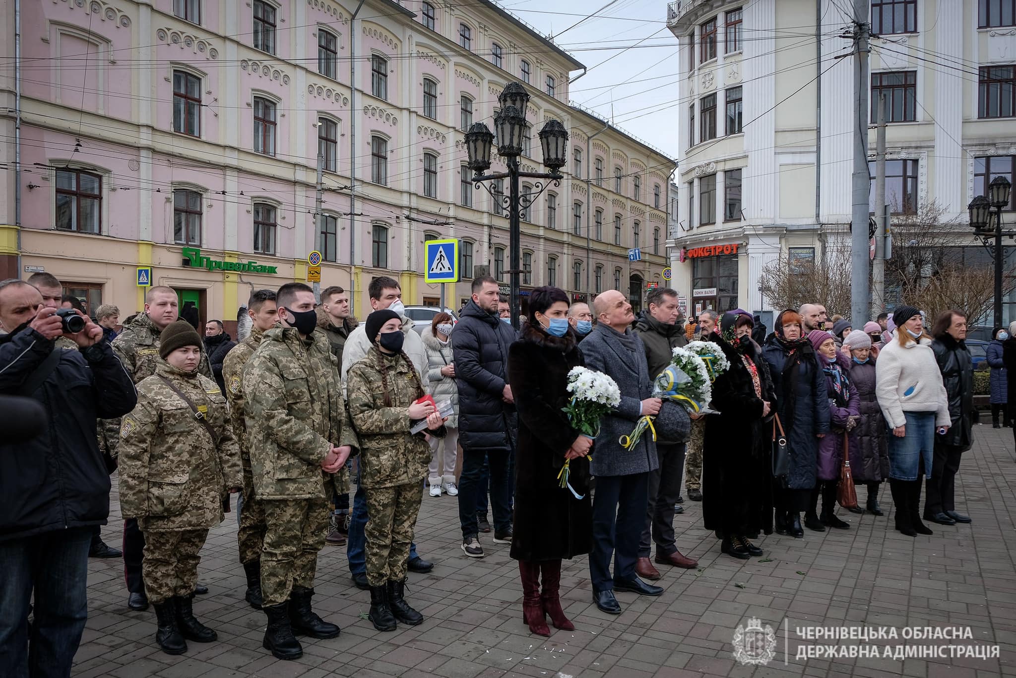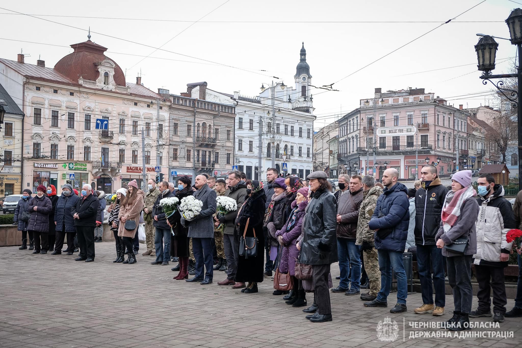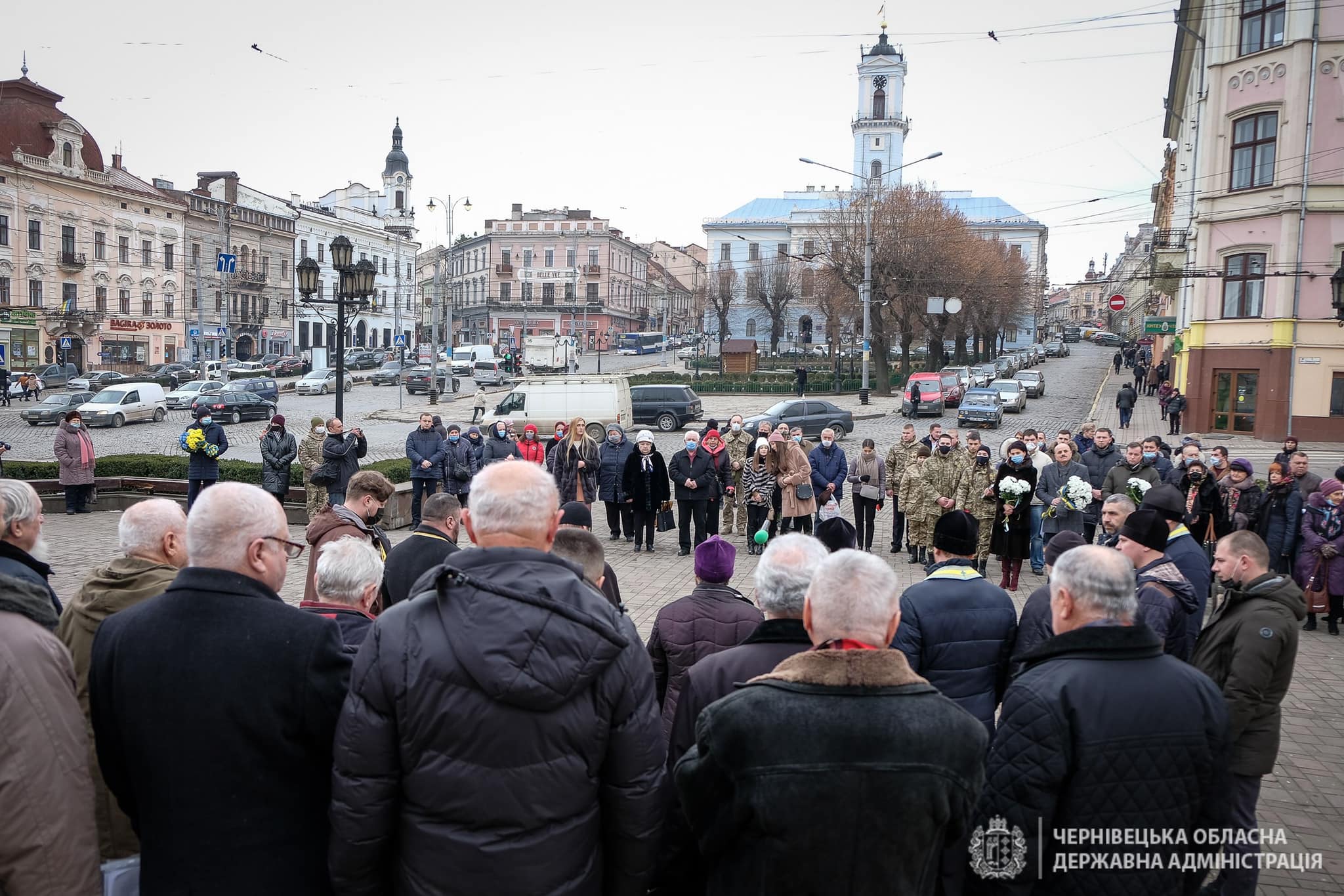 У Чернівцях на Центральній площі відбулося покладання квітів до Стіни пам’яті полеглих та спільна молитва за усіх Героїв.