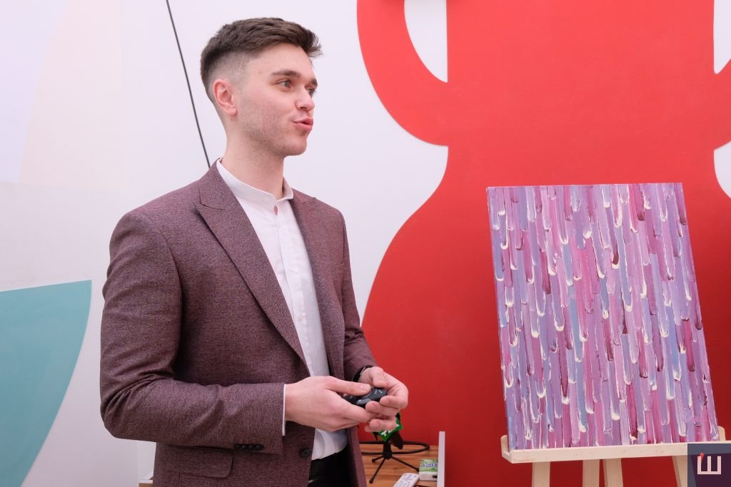 «Ця колекція картин вибрана під дизайн центру, щоб вписувалося в інтер’єр, у кольори. Тут представлені картини 2017, 2019 і 2020-го років. Надихайтеся», — сказала мати художника Альона Гулько.