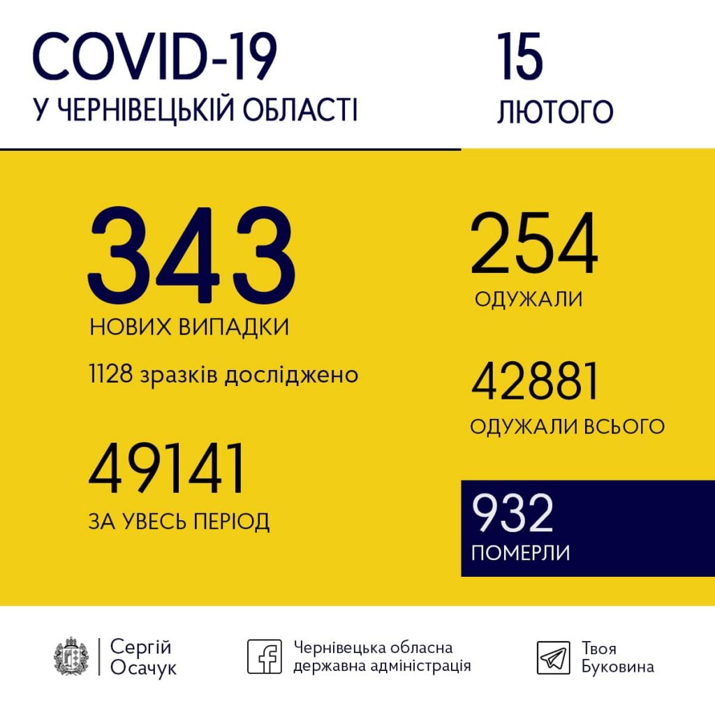 Від початку пандемії на Буковині коронавірус підтвердили у 49 141 особи. Одужали вже 42 881 людей, а 932 померли  від ускладнень.
