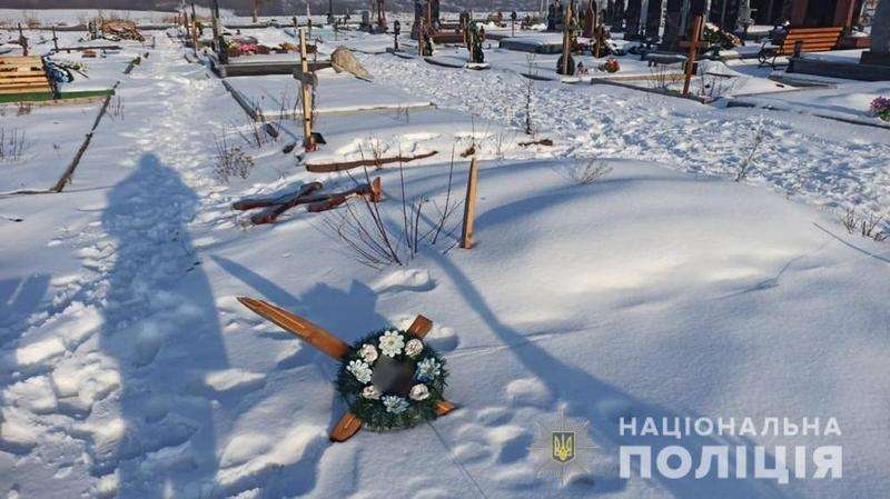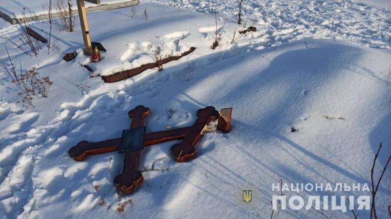 20 лютого до поліції надійшло повідомлення від місцевого жителя про те, що невідома особа зруйнувала хрест на могилі його покійного батька.