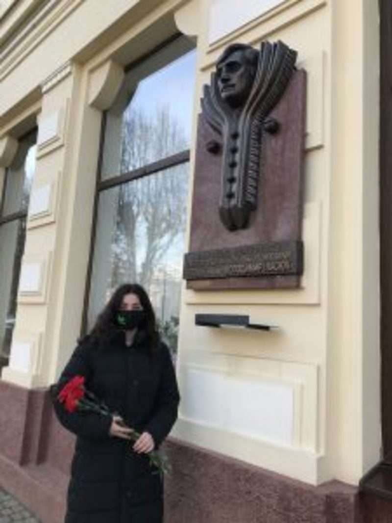 Голова Студентської ради БДМУ поклала квіти до меморіальної дошки Івасюка