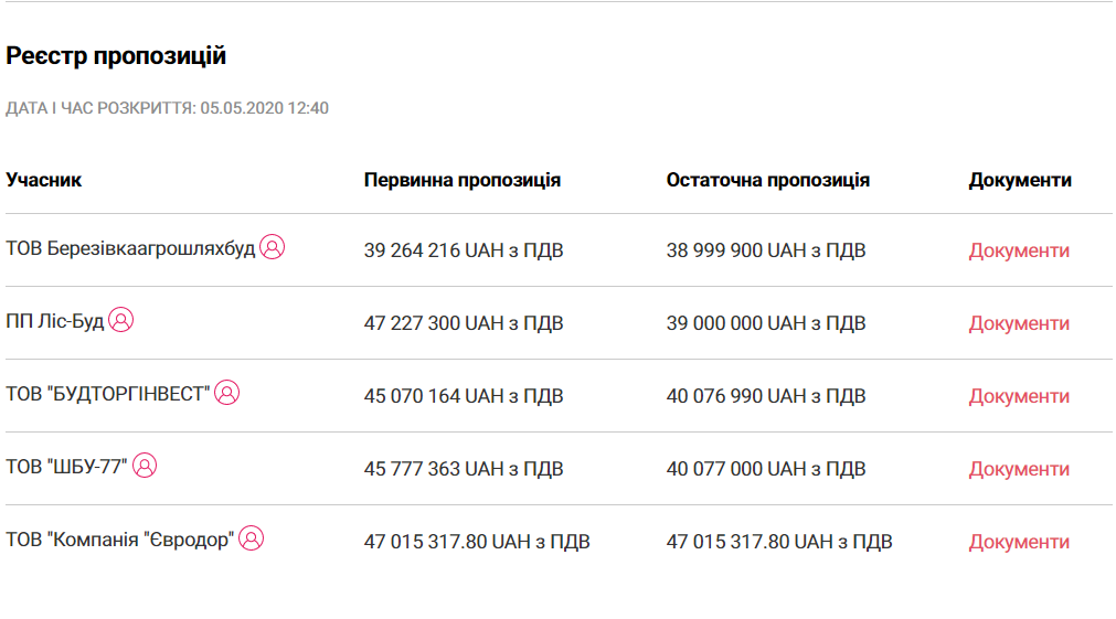 А наступним претендентом був сам «Євродор», пропозиція якого складала 47 015 317 гривень. Це на 7 мільйонів більше за пропозиції «Будторгінвест» та ШБУ-77.