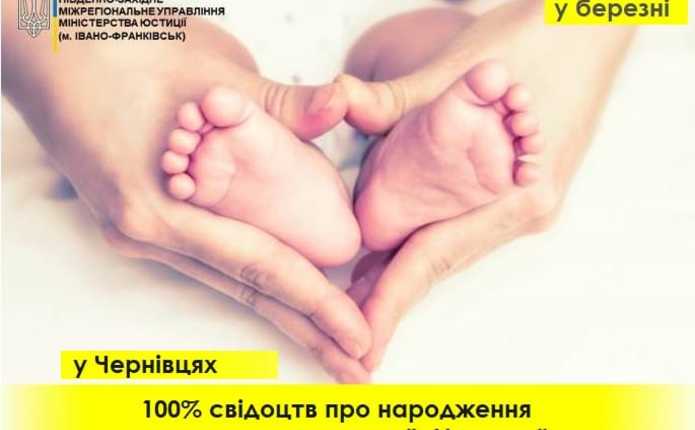 Чернівецький міський відділ державної реєстрації актів цивільного стану в березні зареєстрував 222 народження. 100% – за заявами в рамках комплексної послуги «єМалятко».
