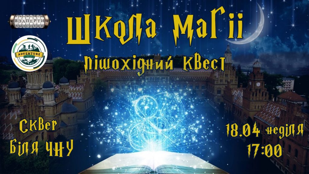 18 квітня о 17:00 у Чернівцях розпочнеться автоквест «Школа магії». Аби взяти участь, потрібно зібрати команду та зареєструватися.