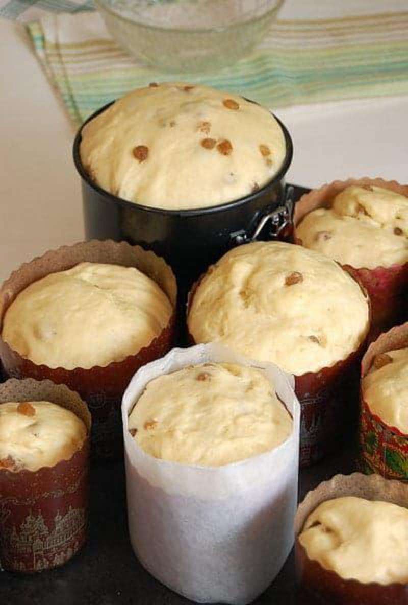 Форми для паски змастити маслом, викласти тісто на третину обсягу. Залишити тісто в формах на 10 хвилин, щоб воно повністю піднялося в формі. Поставити паски в духовку на 10 хвилин при температурі 100 градусів, потім збільшити температуру до 180 градусів і залишити випічку на 40 хвилин.