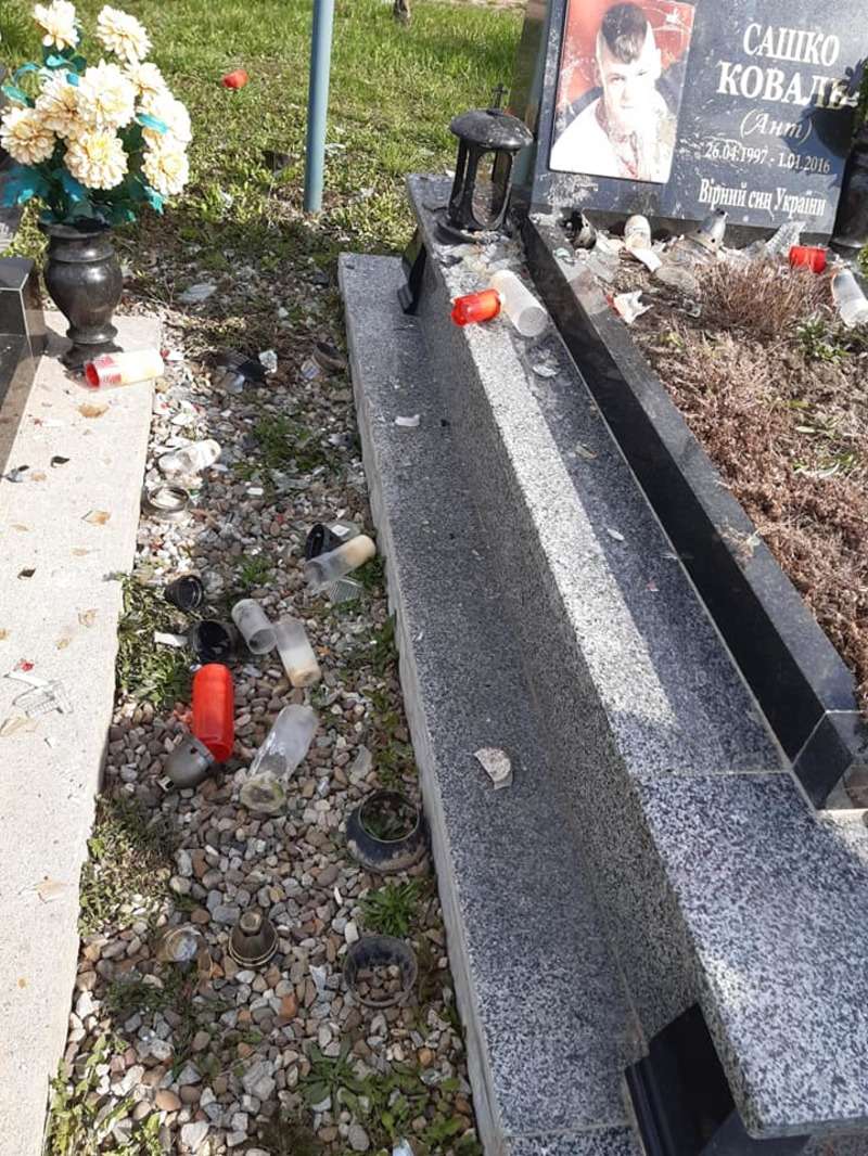 “Немає слів. Така наруга над могилою юного захисника України Сашка Коваля! І якраз за кілька днів до його дня народження. Кому він завинив? Адже віддав найцінніше – своє життя – за мирне і краще наше майбутнє. Вандали розбили світлину на пам’ятнику, навкруги скло, побиті лампадки…”, – йдеться у повідомленні.