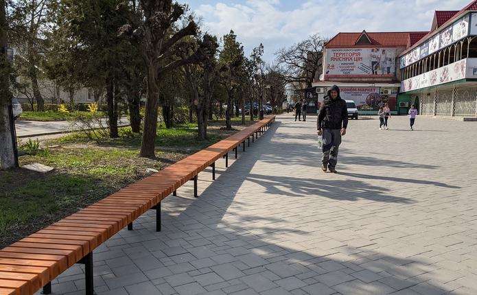 На центральній площі Хотина встановили лавицю, яка є найдовшою лавицею в Чернівецькій області.