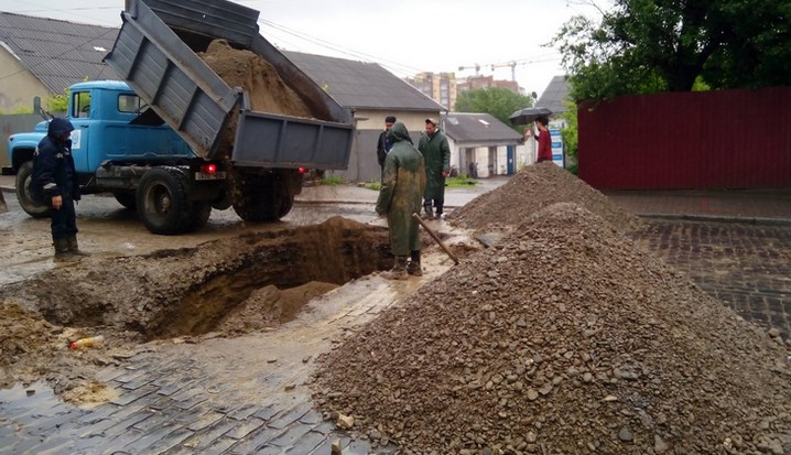 Вчора на вулиці Руській стався провал ґрунту, через аварію мереж. Провалля було настільки великим та глибоким, що туди міг потрапити і тролейбус, і звичайне авто, проте трагедії вдалося запобігти завдяки пильності водіїв.
