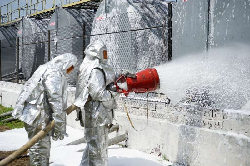 Метою практичного навчання були злагоджені дії під час гасіння умовної пожежі, а також набуття навиків особового складу щодо проведення пінної атаки та гасіння відкритих складів паливно-мастильних матеріалів.