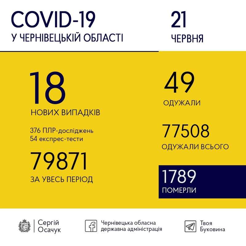 21 червня на Буковині виявили 18 нових випадків коронавірусу.