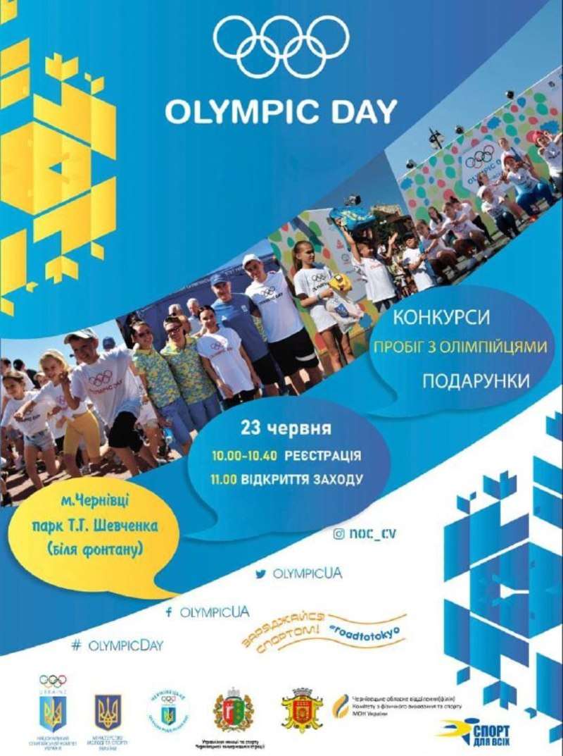 На Буковині проведуть Олімпійський день. Він відбудеться 23 червня об 11:00 у Центральному парку культури та відпочинку, що у Чернівцях. Це щорічний спортивно-масовий захід, який проводиться за ініціативи Міжнародного олімпійського комітету, повідомляє Чернівецька ОДА.