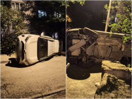 Жінка здійснюючи рух заднім ходом допустила наїзд на бордюрний камінь, через шо авто перевернулося.