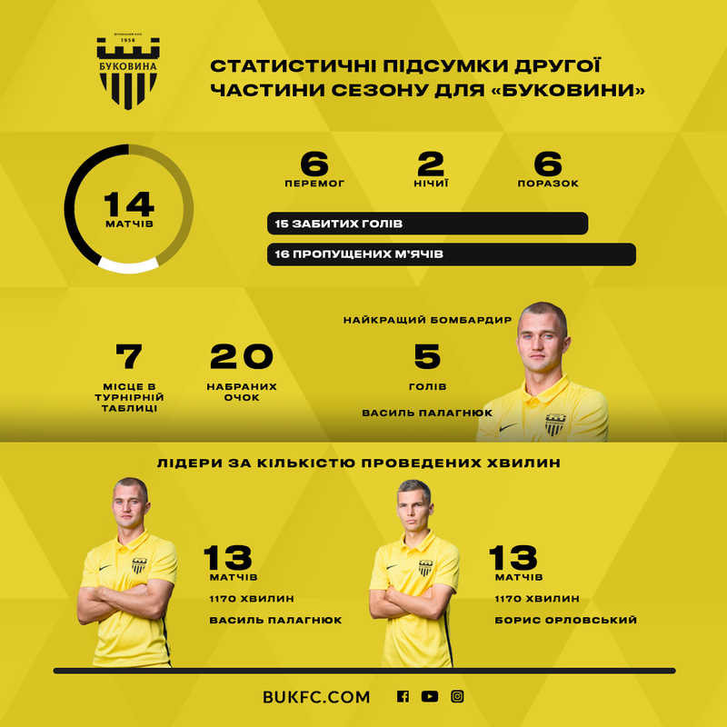 «Буковина» провела 14 матчів (6 перемог, 2 нічиї, 6 поразок)