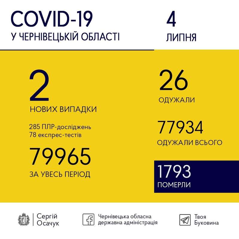 4 липня на Буковині виявили 2 нових випадки коронавірусу.