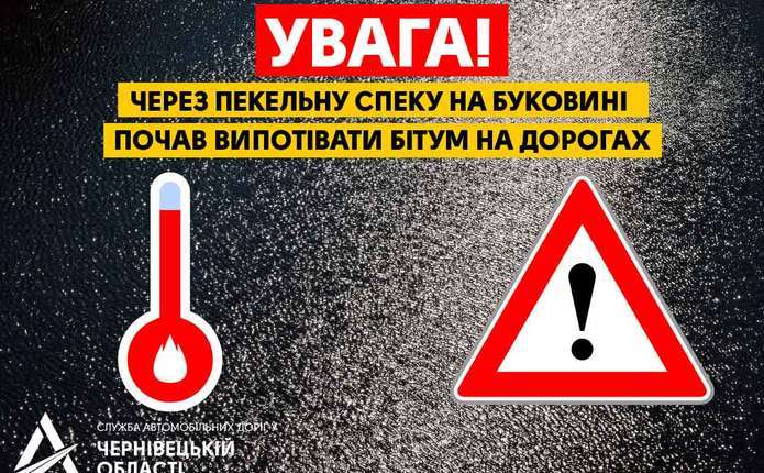 Шматки розплавленого бітуму прилипають до коліс і розлітаються з-під них, завдаючи незручність учасникам дорожнього руху. Крім того, зменшується контакт шин з дорожнім покриттям, що може призвести до аварійно-небезпечних ситуацій. Про це повідомляє Служба автомобільних доріг у Чернівецькій області.