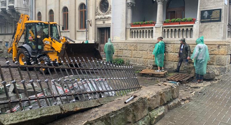 Міська влада Чернівців продовжує «варварську» реконструкцію скверу навпроти ЧНУ біля «Попівського дому». Раніше, за рішенням чернівецької влади в цьому сквері демонтували пам’ятник Сидору Воробкевичу, аргументувавши, що погруддя Воробкевичу є біля 27 школи, тож в центрі пам’ятник видатному буковинцю не потрібен. А вчора розтрощили старовинний паркан. Проте жодної реакції від міської влади чи управління охорони культурної спадщини наразі немає.