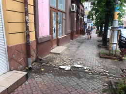Штукатурка впала просто на асфальт під ноги перехожим. На щастя, ніхто не постраждав.