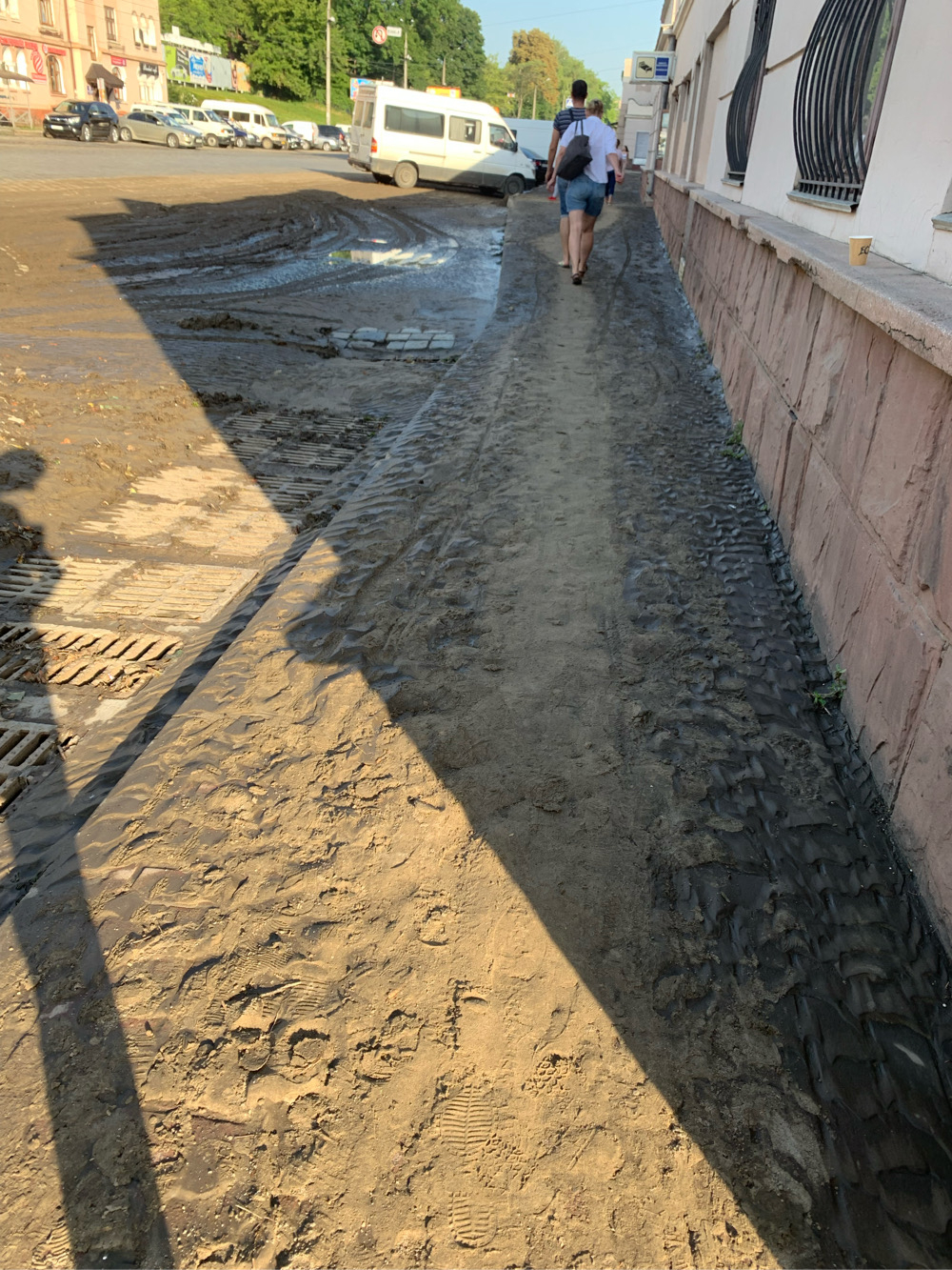 Після вчорашньої зливи вода затопила декілька вулиць та залізничний вокзал. Після того, як вода зійшла, залишилось багато намулу, сміття та піску. Проте оперативно прибрати не вдалося.