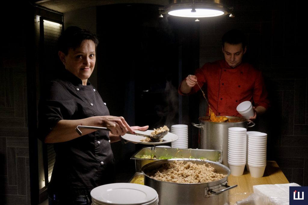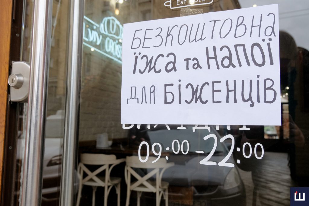 Заходимо в інший ресторан, де приймають на обіди переселенців. Адміністраторка закладу розповідає, що її колеги селили людей у себе вдома. А поки її чоловік у теробороні, жінка теж прихистила незнайому сім’ю.