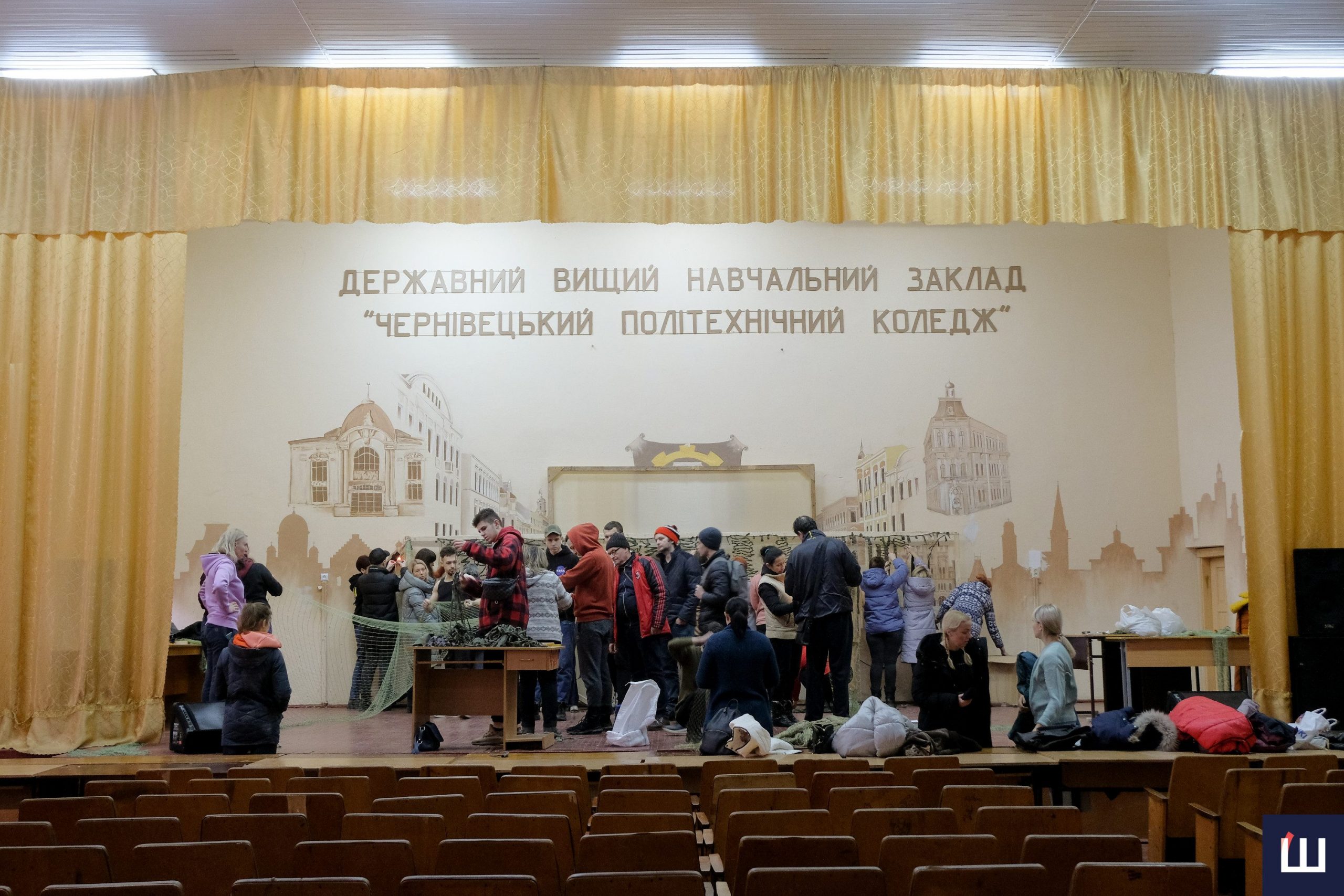 Далі ми поїхали у політехнічний професійний коледж, де розташований один із пунктів збору речей для людей, які приїжджають до нас з інших областей. Вони живуть у гуртожитку поруч.