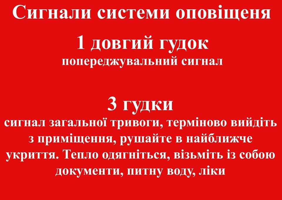 Залишайтеся в укритті до наступного сигналу сирени, яка означає відбій повітряної тривоги! Не виходьте, доки не буде дано команди відбій повітряної тривоги!