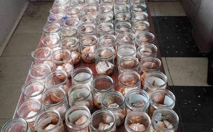 Нова ідея – виготовлення тушонок на фронт. Пропозицію лікаря, завідувача хірургічним відділенням Романа Павлунішина підтримав увесь колектив. Для цього принесли автоклав, закуплено продукти, і робота закипіла. Вже готово близько сотні банок.
