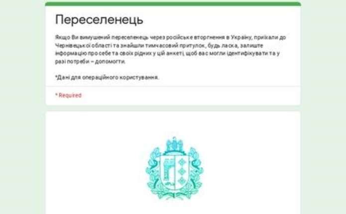 Вимушених переселенців, котрі приїхали на територію Буковини через російське вторгнення, просять заповнити спеціальну google-форму. Про це повідомляє bukoda.gov.ua.