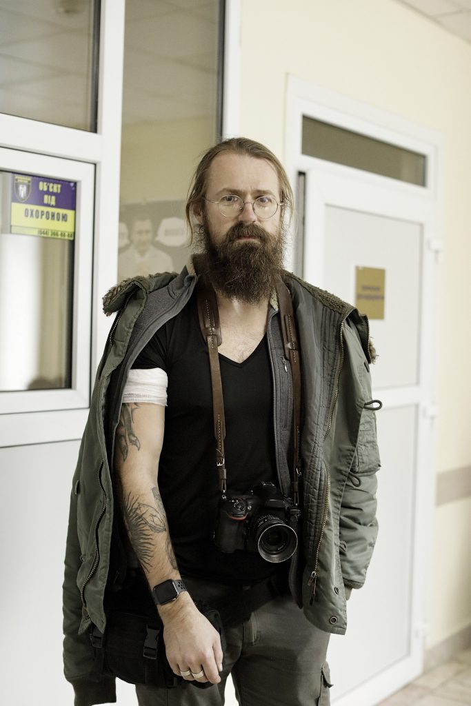 6 березня фотограф працював під Ірпенем. Там йому у руку влучила шрапнель. Разом із колегами він потрапив під бомбардування.