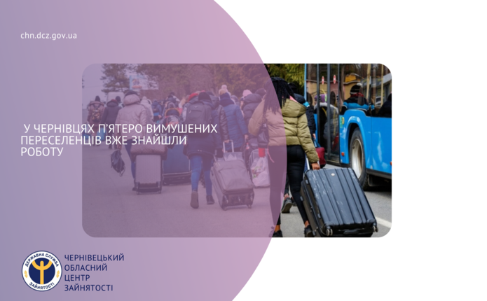 Чернівецька обласна служба зайнятості активно займається працевлаштуванням осіб, які вимушено покинули свої домівки через бойові дії.