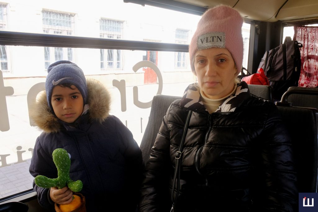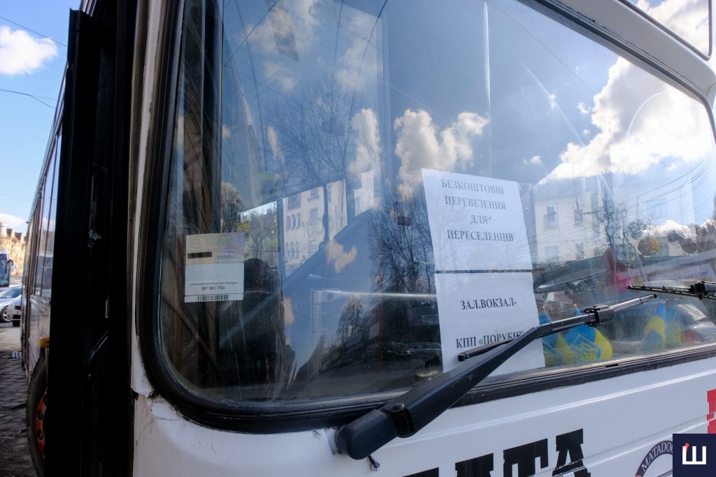 «До кордону, до Молдови», — походжає чоловік то в один, то в інший бік неподалік центрального входу. Незабаром біля нього скупчиться черга охочих. Однак вимушених переселенців чекає не лише він. Людей, які прибули з міст, охоплених війною, безкоштовно відвозить автобус до Румунії.