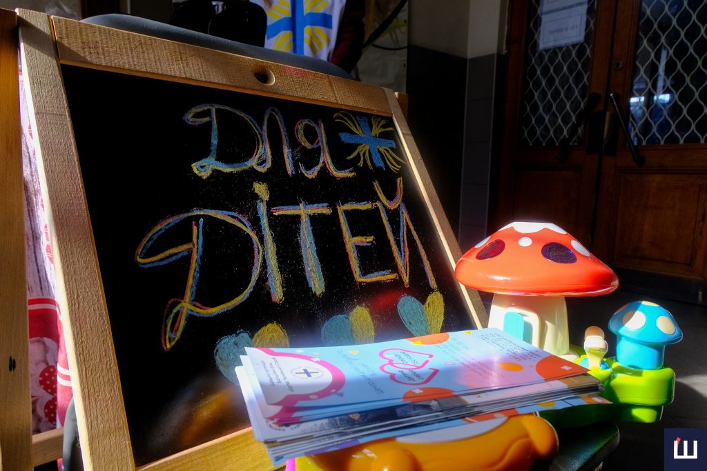 По обидва боки вокзалу стоять волонтери — із солодощами для дітей та гарячим чаєм. Людей небагато, кожного стараються пригостити. До столика раз за разом підходять зацікавлені діти. Деякі сором’язливо відмовляються від їжі, але волонтери швидко знаходять із ними спільну мову.