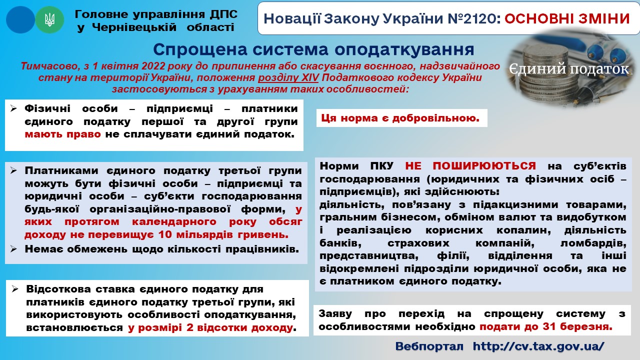 Податкові новації на період дії воєнного стану: платниками єдиного податку за ставкою 2 відсотки можуть бути не лише ФОПи-«спрощенці», але й великі підприємства