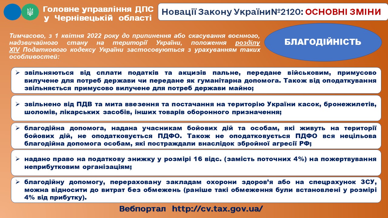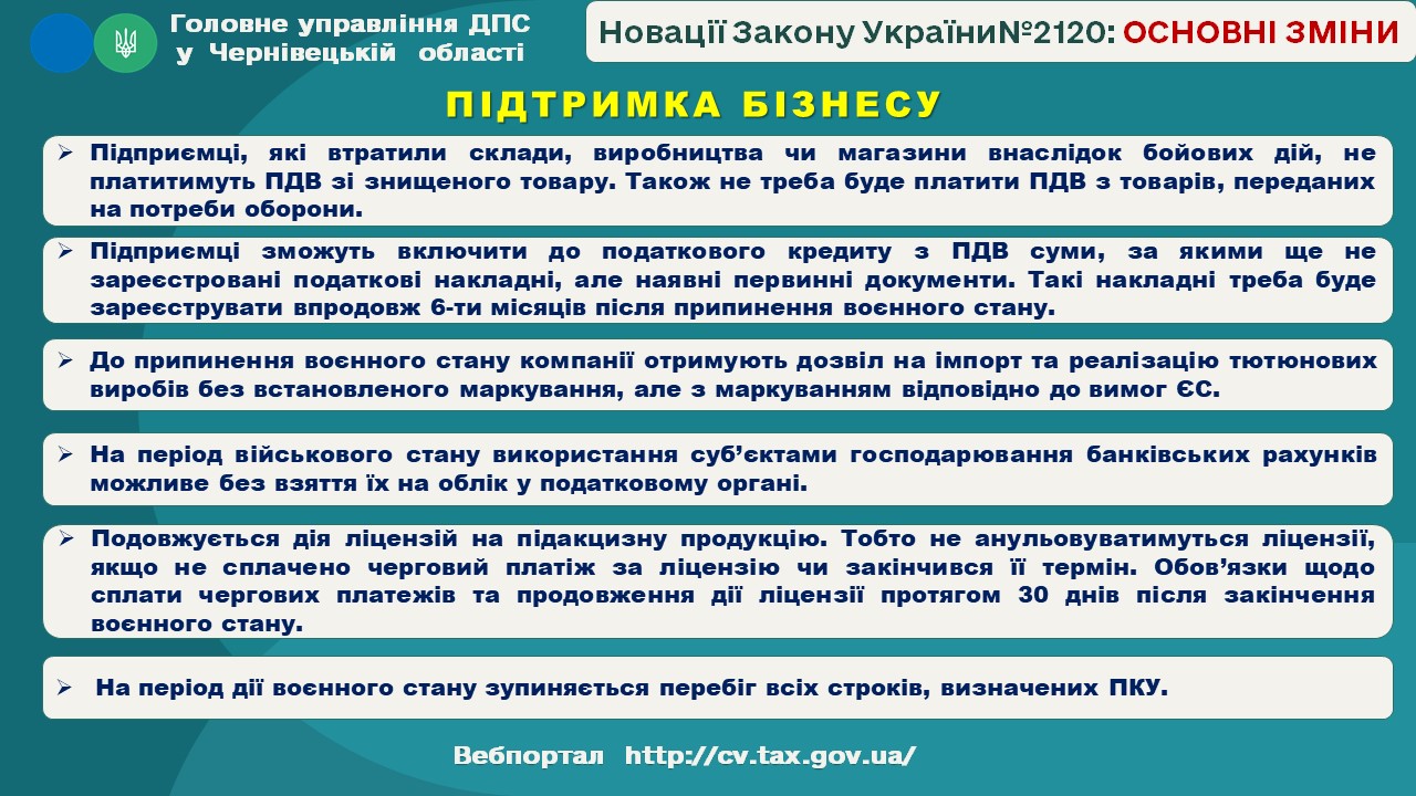 Фахівці інформують, що 17.03.2022 опубліковано Закон України від 15 березня 2022 року № 2120-IX “Про внесення змін до Податкового кодексу України та інших законодавчих актів України щодо дії норм на період дії воєнного стану”.