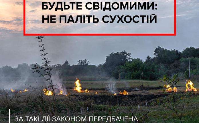 Найчастішою причиною загорянь сухостою є людський фактор. Випалювання сухої трави біля подвір’я може призвести до масштабної пожежі. А це пряма загроза життю громадян, їх домівкам, рослинному і тваринному світові. Тому працівники поліції закликають мешканців області бути обачними та дотримуватись простих правил в природі: