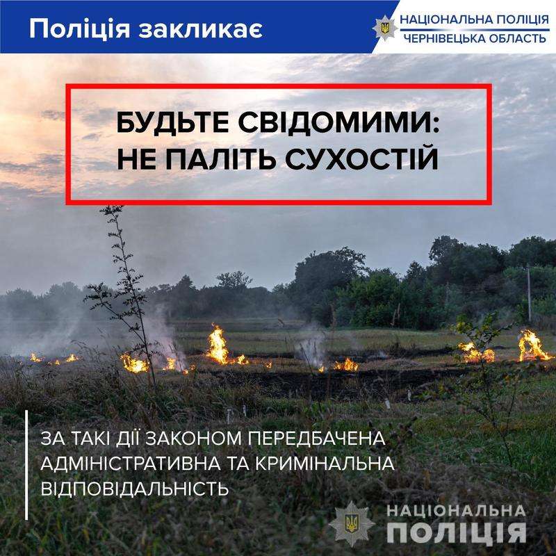 Найчастішою причиною загорянь сухостою є людський фактор, повідомляє відділ комунікації поліції Чернівецької області.