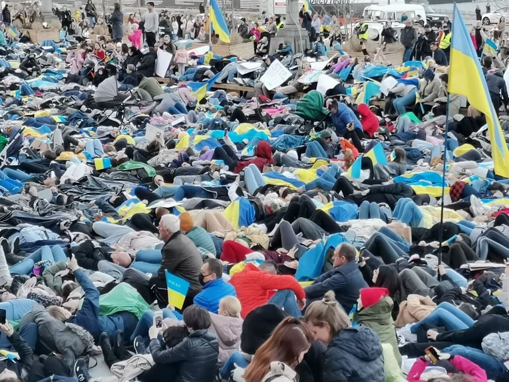 Тисячі українців у Варшаві влаштували перформанс під час мітингу — люди лягли на землю в пам’ять про мирних жителів, що загинули через агресію росії. Це сталося під час візиту президента США Джо Байдена до Польщі. Про це повідомляє ZN.UA.