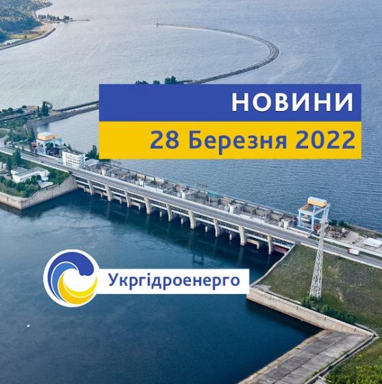 НОВИНИ УКРГІДРОЕНЕРГО СТАНОМ НА 12:00 28 БЕРЕЗНЯ 2022 РОКУ
