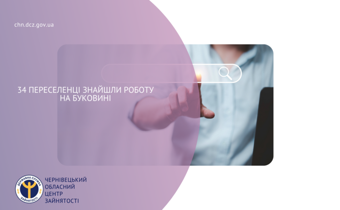 Станом на 30 березня 2022 року, послуги  Чернівецької обласної служби зайнятості отримали 355 осіб, які вимушено покинули свої домівки через бойові дії. З них статус безробітного мають 60 осіб, за сприяння служби зайнятості роботу знайшли 34 особи.