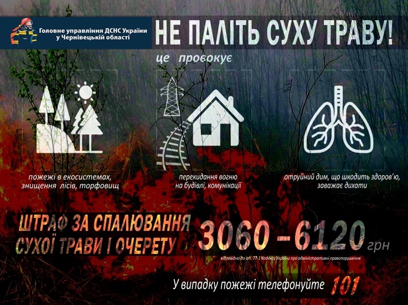Лише з початку 2022 року на території Чернівецького району рятувальники5 ДПРЧ 3ДПРЗ ГУ ДСНС у Чернівецькій області виїжджали на ліквідацію займань сухої трави 41 раз, а саме в громадах: