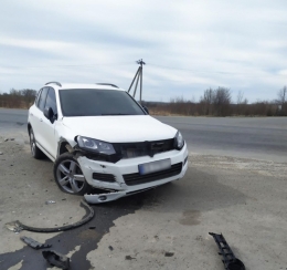 Автопригода сталася сьогодні вранці, 7 квітня, у місці Хотин. Прибувши на місце події, поліцейські попередньо встановили, що 38-річний водій позашляховика “Volkswagen Touareg” виїжджав із другорядної дороги і на перехресті допустив зіткнення з автомобілем “Volkswagen Passat”. За кермом легковика перебувала 41-річна жителька Житомира.
